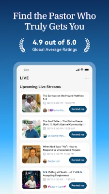 Can’t make it to a church group? Join our daily live streams where pastors and hosts share encouragement, answer questions, and lead powerful prayer sessions. It’s a faith community in your pocket, available anywhere, anytime.
