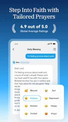 Next, receive a blessing tailored just for you. Share how you truly feel—whether joyful, anxious, or grateful—and you'll get a unique Bible verse and a guided prayer that speaks directly to your situation.
