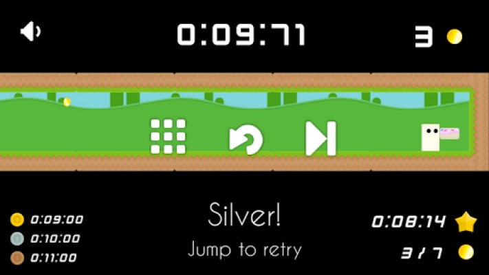 Fast 2D platformer. There is a cake at the end. Your goal is to get it as fast as possible. Run across several levels filled with dangers like mice, ladybugs, flies and other deadly creatures. Beat high score, earn medals and collect all the coins to make the perfect run!