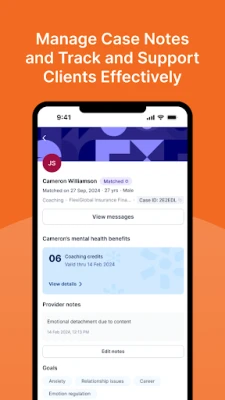 View upcoming sessions, access case notes, track progress, and manage client interactions – securely and on the go.