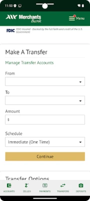 The Merchants Bank mobile banking app provides easy-to-use, secure access to your Merchants accounts from your mobile devices. All the basic online functions you’d expect, like account balances and transfers, plus: