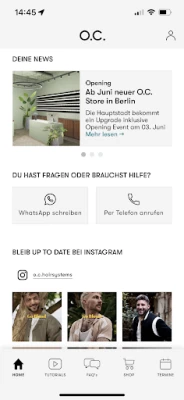 Diese Features kannst du in der O.C. App nutzen: - deine Termine verwalten - Fragen zu Video-Tutorials & FAQs stellen - im Online Shop einkaufen - keine News mehr verpassen - der Customer Service stets nur einen Klick entfernt