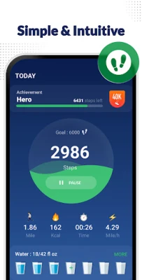 Just tap the start button, and it starts counting your steps. Whether your phone is in your hand, bag, pocket or armband, it can auto-record your steps even your screen is locked.