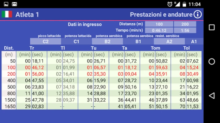 In modalità “Prestazioni” il modello non consente l’utilizzo come dati di ingresso dei tempi ottenuti sulla distanza dei 50 metri, né su quelle minori di 90m.